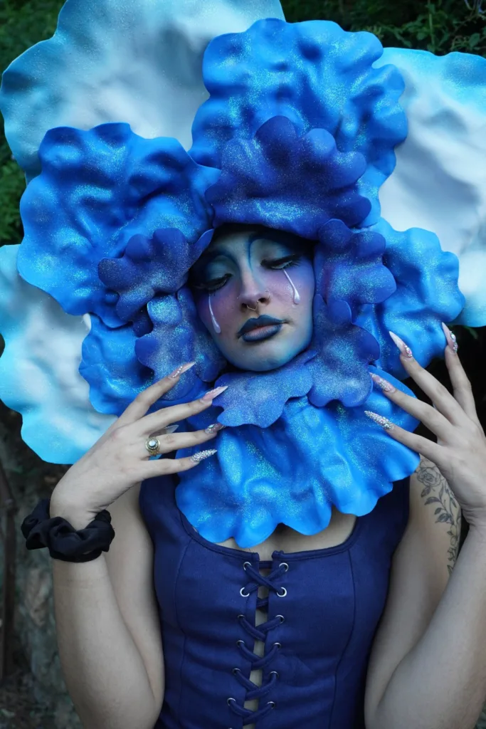Además del maquillaje, la artista se encargó de la dirección de vestuario, adaptándolo a la personalidad de cada flor y al cuerpo de las modelos, así como de la fotografía final de la sesión. En el caso de la flor azul, incluso las lágrimas fueron creadas y pintadas a mano, reforzando el componente emocional y narrativo del personaje.