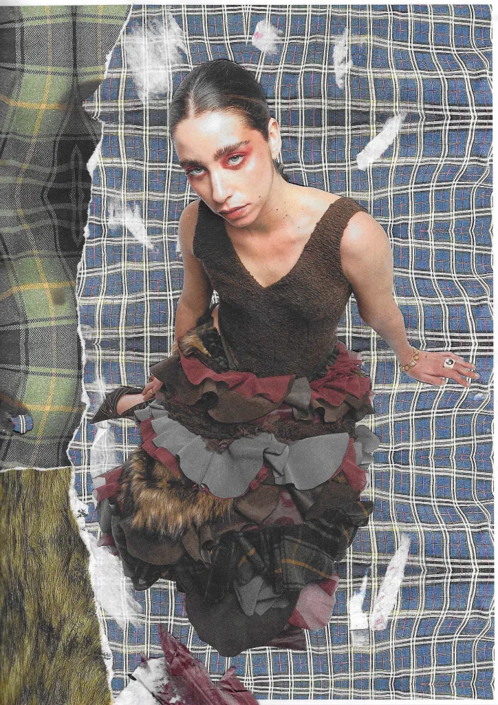 «La utilización del escáner y el collage hace referencia a la manera de expresarme artísticamente cuando era pequeño y al rechazo que sentía en un primer momento a diseñar haciendo collages, ya que lo normal es dibujar los figurines. Finalmente, en esta colección acepté cuales son mis virtudes y lejos de ignorarlas las he aprovechado.»