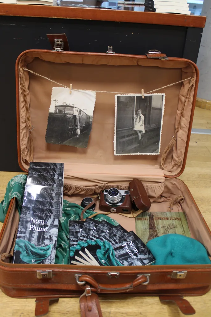 Al entrar en la sala de plenos del edificio, se observa al lado de la mesa una maleta de cuero marrón, llena de recuerdos del pasado: fotografías, una cámara y el pañuelo verde. Se proyecta en la pantalla una foto del libro objeto de presentación realizada por Carmen H.