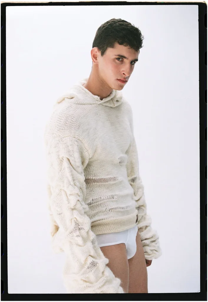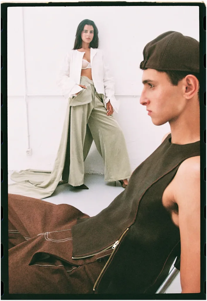 El uso de tejidos juega un papel clave en la narrativa de la colección. Cada material refleja el desgaste, la resistencia o la calidez de la experiencia migratoria: